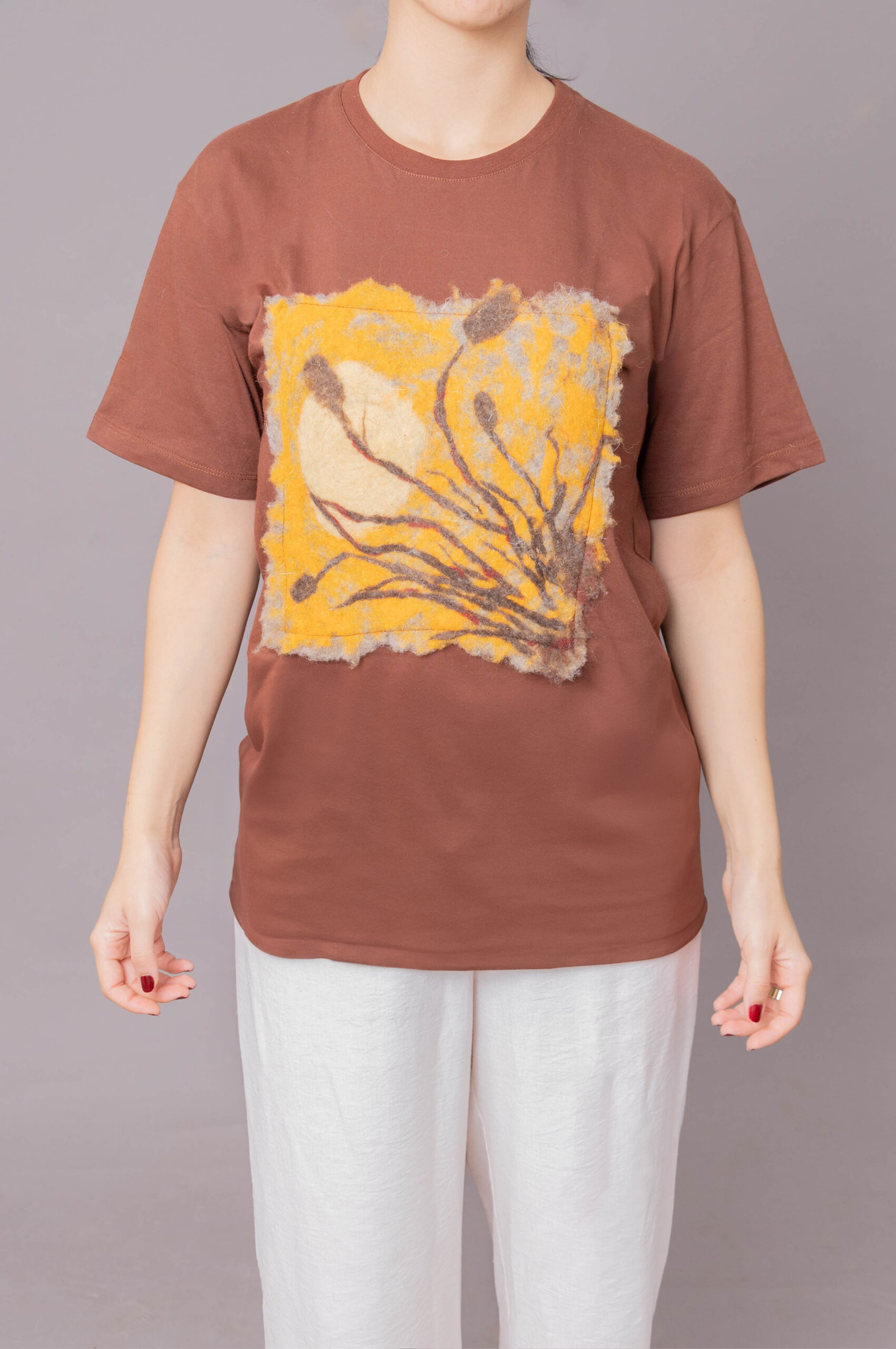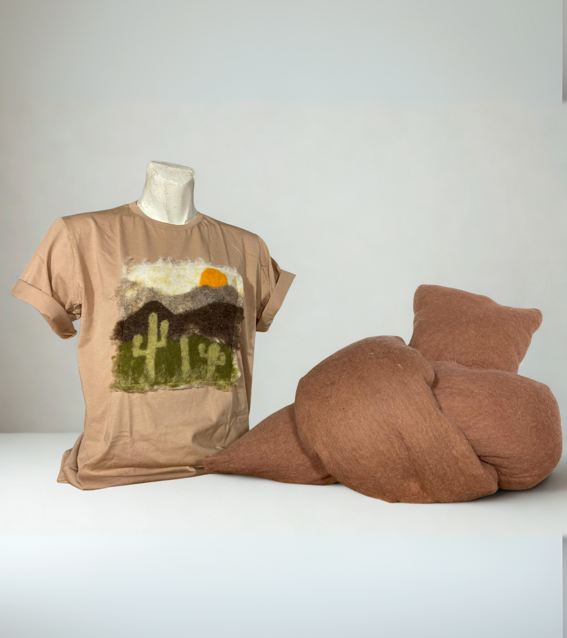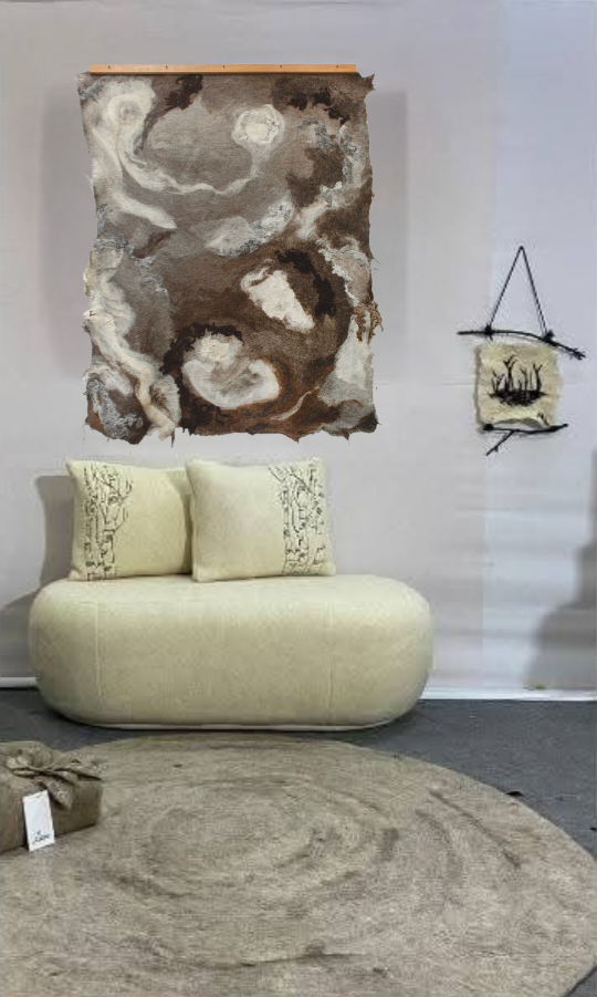 L’art s’invite sur le coton. Des pièces uniques ornées de tableaux en laine feutrée faits main.